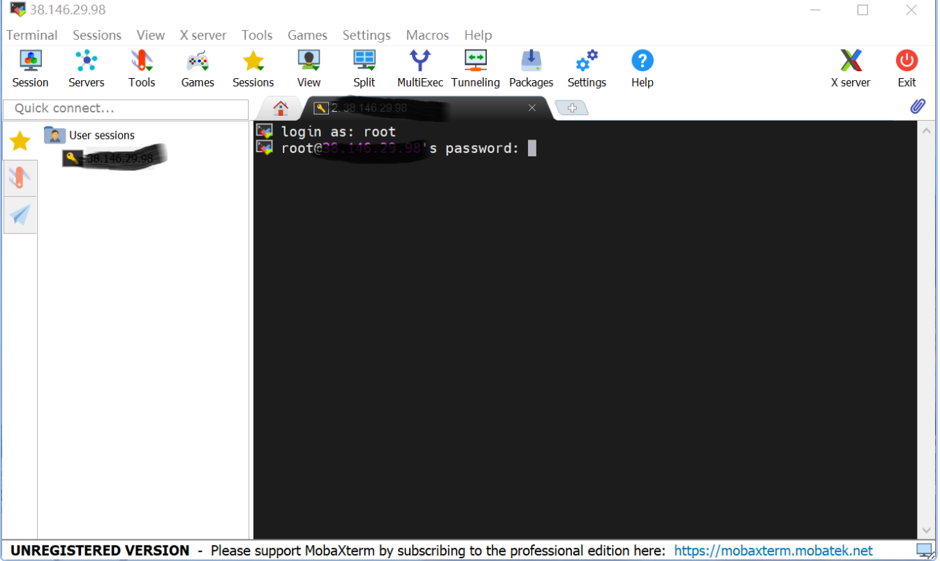 网络上有很多的SSH工具,可以更具自己的喜好去选择。我这边使用的是MobaXterm这个工具,相对于新手比较友好且可以选择免费的,对于新手来说下载免费的已经足够使用乐。如果不想下载工具或者实现麻烦的也可以直接用服务器商的SSH工具。